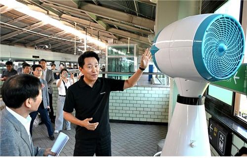 오 시장은 "기록적인 폭염이 장기화하면서 냉방시설이 없는 지하철 역사를 이용 중인 시민들이 불편을 겪고 있다"며 "장기적으로 노후 지하역사에 대해선 환경개선 사업을 실시하고, 냉방시설 설치가 불가한 지상역사는 동행쉼터 확대와 냉난방 보조기 적극 가동을 통해 서민들의 중요한 이동 수단인 지하철 이용에 불편을 덜어드리도록 노력하겠다"고 밝혔다.