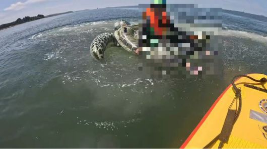 [태안=뉴시스] 태안해경이 12일 오전 10시58분께 안면읍 백사장해수욕장에서 고무보트를 타고 물놀이하다 표류 중인 아이에게 다가가고 있다. (사진=태안해양경찰서 제공) photo@newsis.com *재판매 및 DB 금지 |