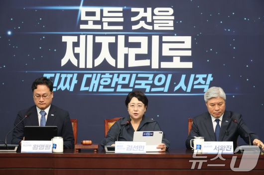 김선민 조국혁신당 대표 권한대행이 23일 오전 서울 여의도 국회에서 열린 최고위원회의에서 발언하고 있다. 2025.6.23/뉴스1 ⓒ News1 이광호 기자 |