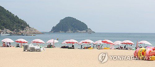 (남해=연합뉴스) 김동민 기자 = 폭염이 이어진 12일 오후 경남 남해군 상주면 상주은모래비치에서 피서객이 파라솔 아래에서 쉬고 있다. 2025.7.12