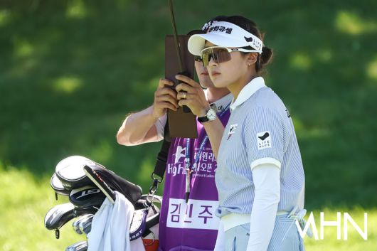 (MHN 정선, 박태성 기자) 12일 강원도 정선군에 위치한 하이원 컨트리클럽(파72/6,544 yds)에서 '하이원리조트 여자오픈 2025'(총상금 10억 원, 우승상금 1억 8천만 원) 무빙데이 3라운드가 열렸다. 김민주(한화큐셀)가 2번홀 경기를 펼치고 있다. <저작권자 Copyright ⓒ MHN / 엠에이치앤 무단전재 및 재배포 금지>