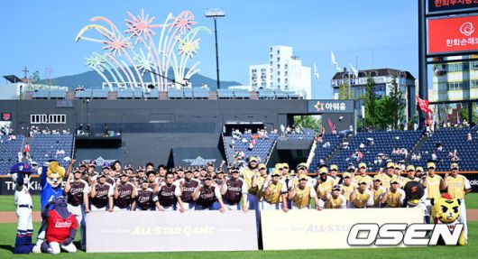 [OSEN=대전, 최규한 기자] 12일 오후 대전 한화생명볼파크에서 ‘2025 신한 SOL Bank KBO리그’ 올스타전이 열렸다.KBO 올스타전 경기는 드림 올스타와 나눔올스타 대표로 나선 총 30명의 선수가 치열한 승부를 펼친다.경기를 앞두고 올스타 선수들이 모두 모여 기념촬영을 하고 있다. 2025.07.12 / dreamer@osen.co.kr |