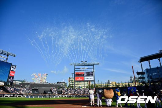 [OSEN=대전, 박준형 기자] 12일 오후 대전 한화생명볼파크에서 2025 신한 SOL뱅크 KBO 올스타전이 열렸다. 13년 만에 대전에서 열리는 KBO 올스타전은 드림 올스타와 나눔올스타 대표로 나선 총 30명의 선수가 치열한 승부를 펼친다. 올스타전 시작을 알리는 축포가 터지고 있다. 2025.07.12 / soul1014@osen.co.kr