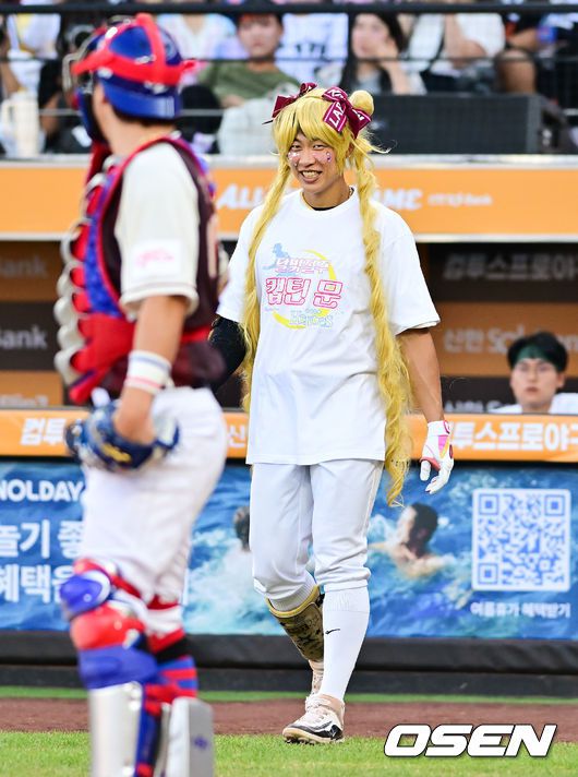 [OSEN=대전, 박준형 기자] 12일 오후 대전 한화생명볼파크에서 2025 신한 SOL뱅크 KBO 올스타전이 열렸다. 13년 만에 대전에서 열리는 KBO 올스타전은 드림 올스타와 나눔올스타 대표로 나선 총 30명의 선수가 치열한 승부를 펼친다. 1회말 키움 송성문이 세일러문 복장으로 입장하고 있다2025.07.12 / soul1014@osen.co.kr