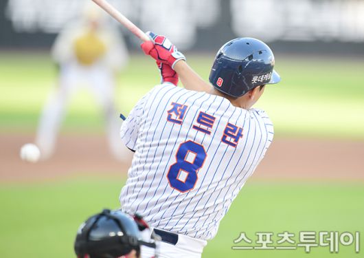 [대전=스포츠투데이 권광일 기자] 2025 신한은행 SOL Bank KBO 올스타 드림팀과 나눔팀의 경기가 12일 대전 한화생명볼파크에서 열렸다. 드림팀 전준우가 1회초 타석에서 타격을 하고 있다. 2025.07.12. [스포츠투데이 권광일 기자 sports@stoo.com]