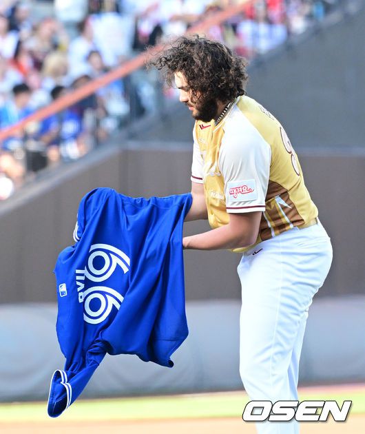[OSEN=대전, 최규한 기자] 12일 오후 대전 한화생명볼파크에서 ‘2025 신한 SOL Bank KBO리그’ 올스타전이 열렸다. KBO 올스타전 경기는 드림 올스타와 나눔올스타 대표로 나선 총 30명의 선수가 치열한 승부를 펼친다. 올스타전 선발투수 한화 폰세가 류현진의 메이저리그 시절 유니폼을 입고 있다. 2025.07.12 / dreamer@osen.co.kr