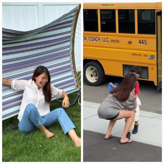 공개된 사진엔 미국의 교외, 노란 스쿨버스, 잔디밭과 해먹, 그리고 아이가 있다. 그리고 그 모든 장면의 중심에는 ‘정윤이 엄마’ 이시영이 있었다.