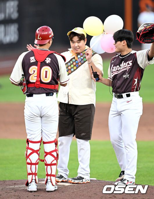 [OSEN=대전, 이대선 기자] 12일 오후 대전 한화생명볼파크에서 2025 신한 SOL뱅크 KBO 올스타전이 열렸다. 13년 만에 대전에서 열리는 KBO 올스타전은 드림 올스타와 나눔올스타 대표로 나선 총 30명의 선수가 치열한 승부를 펼친다. 4회말 디즈니 '업'의 러셀 분장을 한 드림올스타 이로운이 마운드를 오르고 있다. 2025.07.12 / sunday@osen.co.kr