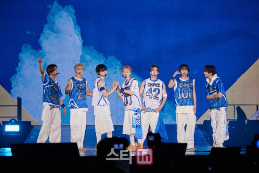이날 공연 첫 멘트 시간에 마크는 “고척돔에 오신 걸 환영한다”며 “소중한 주말에 저희를 보러와 주셔서 너무 감사하다”고 인사했다. 이어 마크는 “자리를 꽉 채워주셔서 감사하다”며 “끝까지 즐겨달라”고 당부했다.
