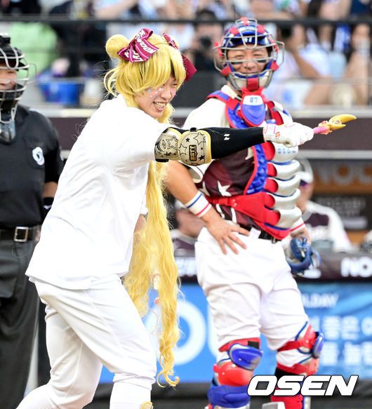 [OSEN=대전, 최규한 기자] 12일 오후 대전 한화생명볼파크에서 ‘2025 신한 SOL Bank KBO리그’ 올스타전이 열렸다. KBO 올스타전 경기는 드림 올스타와 나눔올스타 대표로 나선 총 30명의 선수가 치열한 승부를 펼친다. 나눔 올스타 키움 송성문이 타석에 들어서고 있다. 2025.07.12 / dreamer@osen.co.kr
