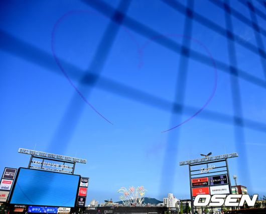 [OSEN=대전, 지형준 기자] 12일 오후 대전 한화생명볼파크에서 2025 신한 SOL뱅크 KBO 올스타전이 열렸다. 13년 만에 대전에서 열리는 KBO 올스타전은 드림 올스타와 나눔올스타 대표로 나선 총 30명의 선수가 치열한 승부를 펼친다. 경기에 앞서 공군 특수비행 팀 블랙이글스의 에어쇼가 펼쳐지고 있다. 2025.07.12 / jpnews@osen.co.kr