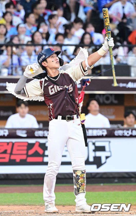 [OSEN=대전, 최규한 기자] 12일 오후 대전 한화생명볼파크에서 ‘2025 신한 SOL Bank KBO리그’ 올스타전이 열렸다. KBO 올스타전 경기는 드림 올스타와 나눔올스타 대표로 나선 총 30명의 선수가 치열한 승부를 펼친다. 드림 올스타 롯데 전민재가 타석에 들어서고 있다. 2025.07.12 / dreamer@osen.co.kr