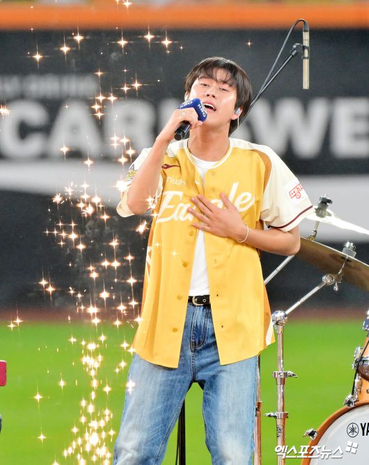 (엑스포츠뉴스 대전, 김한준 기자) 12일 오후 대전한화생명볼파크에서 열린 '2025 신한 SOL Bank KBO 올스타전' 드림 올스타와 나눔 올스타의 경기, 클리닝타임때 가수 이무진이 멋진 공연을 선보이고 있다.김한준 기자 kowel@xportsnews.com