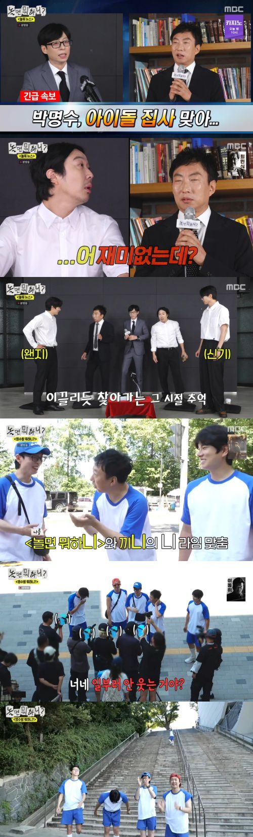 12일 전파를 탄 MBC '놀면 뭐하니?'는 '명수랑 뭐하니?' 특집으로 꾸려졌다. 게스트로 나온 박명수는 '놀면 뭐하니?'의 전신인 '무한도전'의 원년 멤버. 유재석은 오랜만에 박명수 리포터를 소환했다.