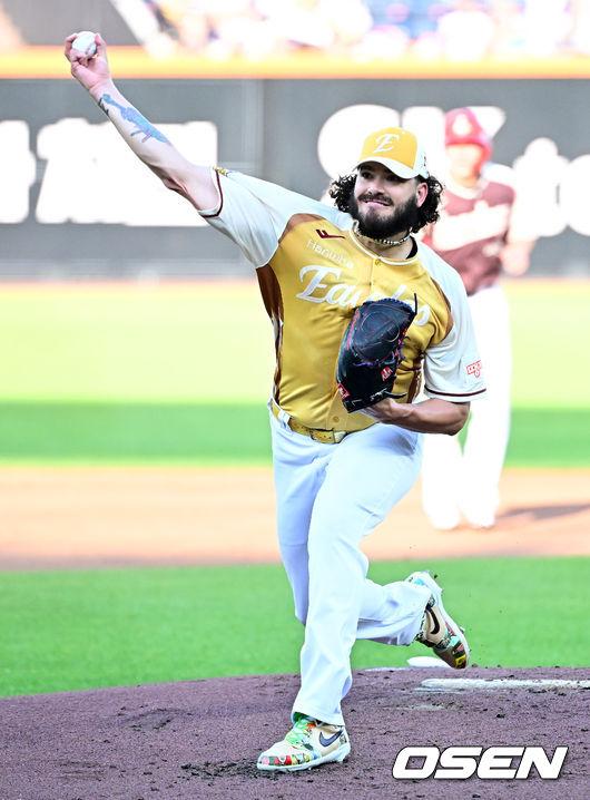 [OSEN=대전, 지형준 기자] 12일 오후 대전 한화생명볼파크에서 2025 신한 SOL뱅크 KBO 올스타전이 열렸다. 13년 만에 대전에서 열리는 KBO 올스타전은 드림 올스타와 나눔올스타 대표로 나선 총 30명의 선수가 치열한 승부를 펼친다. 1회 한화 폰세가 역투하고 있다. 2025.07.12 / jpnews@osen.co.kr