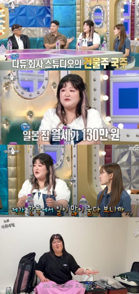 코미디언 이국주가 '건물주;의 화려한 타이틀과 달리, 일본 도쿄에서 9평짜리 작은 월세 원룸에서 검소한 생활을 이어가고 있다고 털어놨다.