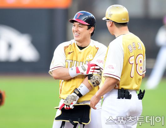 [대전=스포츠투데이 권광일 기자] 2025 신한은행 SOL Bank KBO 올스타 드림팀과 나눔팀의 경기가 12일 대전 한화생명볼파크에서 열렸다. 나눔팀 박동원이 2회말 1타점 안타를 치고 있다. 2025.07.12. [스포츠투데이 권광일 기자 sports@stoo.com]
