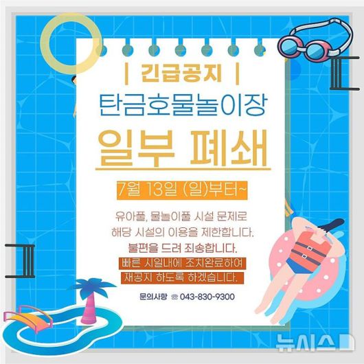 [충주=뉴시스] 서주영 기자 = 충북 충주시시설관리공단은 12일 탄금호물놀이장 일부를 임시 폐쇄한다고 밝혔다.