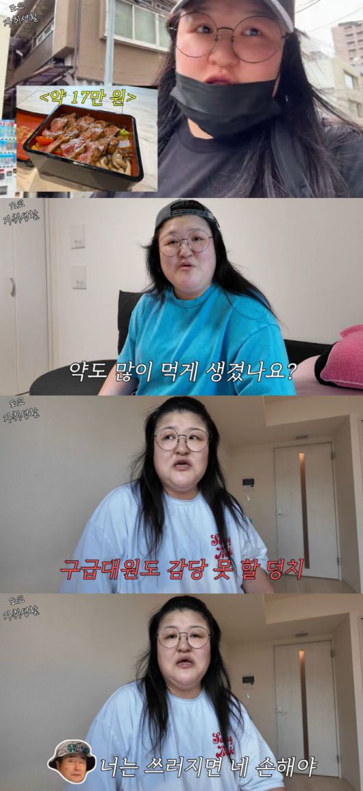 이국주는 "아까 2시간 나가 있었는데 길에서 넘어갈 것 같았다. 쓰러지면 누가 날 케어하냐. 일본 사람들 다 작아서 119 와봤자 두 분이 나 절대 못 든다. 어떻게 하냐. 내가 정신 차리고 살아야지"라며 웃픈 현실을 전했다.
