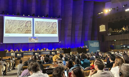 유네스코 세계유산위원회가 12일(현지시간) 프랑스 파리 유네스코 본부에서 열린 제47차 회의에서 '반구천의 암각화'의 등재 여부를 논의하고 있다. 국보 '울주 대곡리 반구대 암각화'와 '울주 천전리 명문과 암각화'를 묶은 반구천의 암각화는 한국의 17번째 세계유산으로 등재됐다. 연합뉴스 |