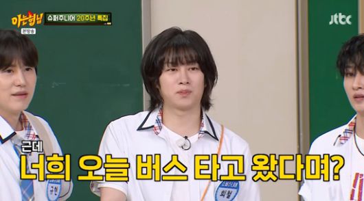 이수근은 슈퍼주니어에게 "너희 오늘 버스를 타고 왔다며?"라고 물었다. 이특은 "왜냐하면 우리가 2005년 데뷔할 때 홍보를 하려고 래핑 버스를 타고 스케줄을 다녔다"라며 버스를 타고 온 이유를 공개했다. 신동은 "희철이가 타자고 했다"라고 말했다.