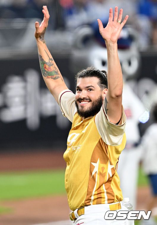 우승 투수상을 수상한 폰세가 관중석을 향해 인사를 하고 있다. 2025.07.12 / sunday@osen.co.kr