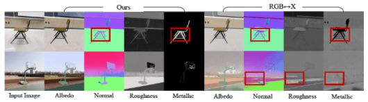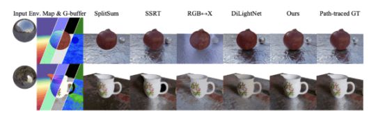 역방향 렌더링 성능도 뛰어났다. 장면의 재질, 알베도, 표면 법선 등을 더 정확하게 추정하며, 영상 기반 학습을 통해 시점이 바뀔 때의 정보까지 잘 활용했다는 설명이다.