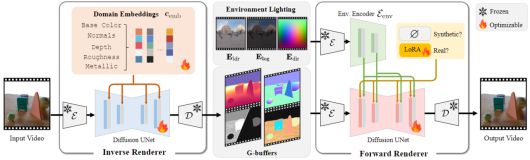 현실 세계 영상에는 이런 정답 정보가 없기 때문에, 연구진은 합성 데이터를 학습한 역방향 렌더러로 현실 영상에서도 정보(G-buffer)를 자동으로 생성했다. 이렇게 만들어진 데이터는 완벽하지는 않지만 실제에 가까우며, 순방향 렌더러가 작동하는 기반이 된다.