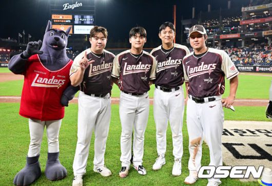 경기종료 후 SSG 이로운과 조병현, 조형우, 최정이 포즈를 취하고 있다. 2025.07.12 / soul1014@osen.co.kr