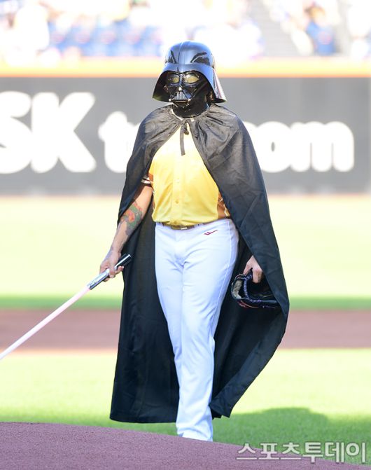 나눔 선발투수 폰세가 포문을 열었다. 평소 경기 전 스타워즈를 보며 마인드컨트롤한다는 폰세는 이날 영화 등장인물 '다스 베이더' 복장을 하고 마운드로 향했다. 마운드에 오른 뒤에는 팬이었다고 밝힌 소속팀 동료 류현진의 메이저리그(MLB) 토론토 블루제이스 시절 유니폼으로 갈아입고 타자를 상대했다.