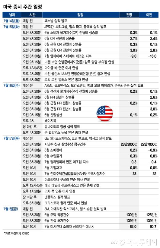 미국 증시 주간 일정_0713/그래픽=김현정 |