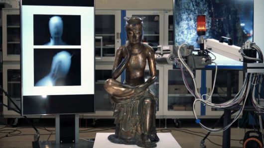 국보 반가사유상의 상태를 점검하는 모습. 국립중앙박물관 |