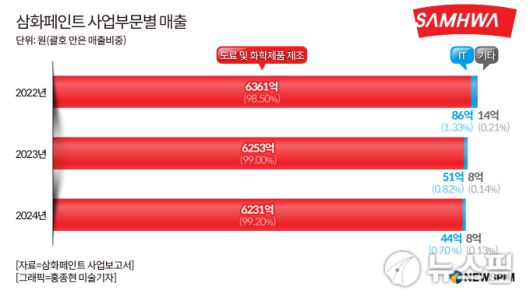 삼화페인트 사업부문별 매출. [그래픽=홍종현 미술기자] |