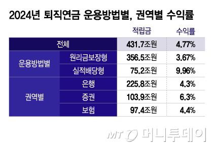 2024년 퇴직연금 운용방법별, 권역별 수익률/그래픽=이지혜 |