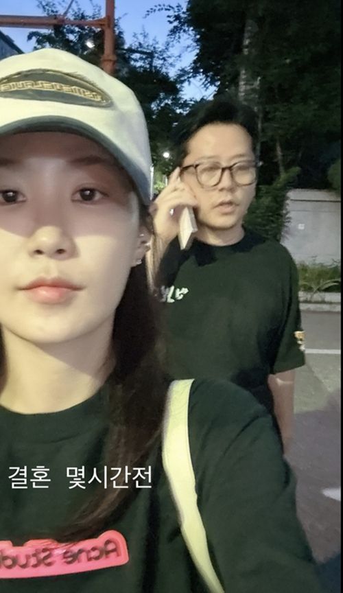 민낯에 가까운 얼굴, 챙을 살짝 눌러쓴 캡, 나란한 검은 티셔츠. 무언가를 준비하거나 의식한 모습이 아닌, 일상의 연장선이었다. 그녀의 얼굴은 말없이 웃었고, 그 뒤를 따르던 김준호는 전화 통화를 이어가고 있었다. 결혼을 앞둔 순간조차 각자의 일상처럼 나뉘어 있었고, 그래서 더 현실적이었다.