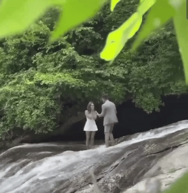 한 남성은 여자친구와 폭포 꼭대기에 올랐다. 남성은 폭포 한가운데서 무릎을 꿇고 반지를 꺼내던 찰나에 균형을 잃고 미끄러져 폭포 아래로 휩쓸려 내려갔다. 인생에서 가장 행복해야할 순간이 공포로 바뀐 순간이다. 여자친구는 손을 뻗으며 소리를 지르는 등 충격에 빠진 모습을 보였다.