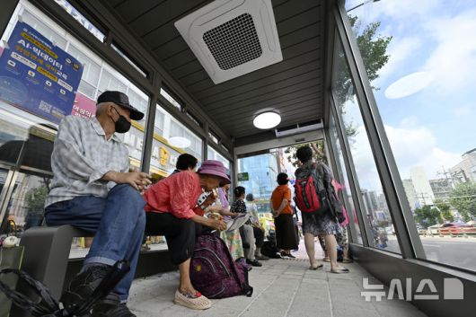 [광주=뉴시스]이영주 기자 = 폭염 속 에어컨이 설치된 버스정류장(스마트쉘터)이 교통약자들로부터 각광받고 있지만 광주 지역별 설치 편중화가 심하고 향후 설치 계획도 불투명한 자치구가 있다.
