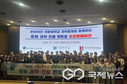(청주=국제뉴스) 이재기 기자 = 충북도교육청(교육감 윤건영)은 12일 서울대학교 관악캠퍼스에서 서울대학교와 함께 추진한 '2025 충북 과학‧진로 멘토링 프로그램' 오리엔테이션을 학생과 교사 등 100여 명이 참여한 가운데 가졌다.