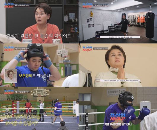 한편 헤드기어와 마우스피스까지 착용하자, 시합 직전 살벌한 긴장감이 감돌았다. 이경실이 관객석에서 두 손을 모으고 손보승을 지켜보는 가운데, 그는 "군대 가기 전에 엄마한테 그래도 '나, 관리하면서 살고 있다'는 걸 보여주고 싶었다"면서 복싱대회에 참가한 이유를 밝혔다.