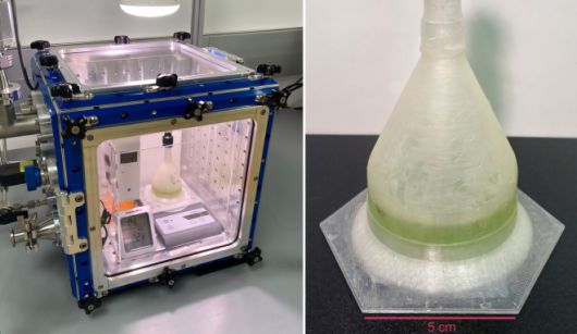 연구팀은 3D 프린터로 바이오 플라스틱 배양 용기를 출력한 다음 단세포 광합성 조류 중 하나인 두날리엘라 테르티오렉타(Dunaliella tertiolecta)를 화성과 비슷한 조건에서 배양했습니다. 화성과 비슷한 낮은 기압과 이산화탄소가 대부분인 대기, 그리고 해로운 자외선이 많은 빛을 모방한 환경에서 실험한 결과, 이 바이오 플라스틱 용기는 해로운 자외선을 차단하면서 두날리엘라가 자라는 데 필요한 햇빛은 충분히 통과시키는 것으로 나타났습니다. (사진)