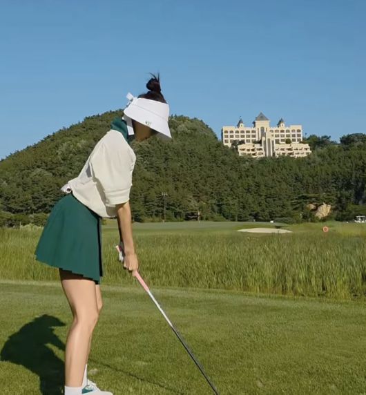 박한별은 12일 자신의 인스타그램을 통해 골프장에서 촬영한 사진을 공개했다. 흰색 바이저와 티셔츠, 그리고 초록색 플리츠 스커트를 매치한 박한별은 여전히 눈부신 비주얼을 자랑했다.
