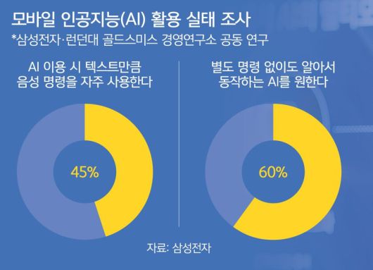 박 부사장이 갤럭시 AI의 미래로 꼽은 앰비언트 인텔리전스는 모바일 AI 사용자들이 이미 바라고 예측하는 방향이었다. 삼성전자는 AI 사용자 피드백을 위해 영국 런던대학교 골드스미스 경영연구소와 꾸준히 공동 연구를 진행해왔는데, 최근 조사에서 모바일 AI 사용자 10명 중 4명 이상(45%)이 “타이핑만큼이나 음성 명령을 자주 사용한다”고 대답해 AI가 멀티모달 시대에 진입했음을 확인했다. 또 응답자 10명 중 6명이 모바일 AI에 바라는 점으로 앰비언트 인텔리전스의 모습을 언급했다. 이들은 “스마트폰이 사용자의 패턴 등을 활용해 별도의 명령 없이도 필요로하는 것을 알아서 해주길 바란다”고 답했다.