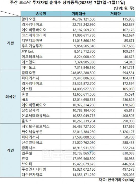 [한국금융신문 정선은 기자] [주간 코스닥 순매수]