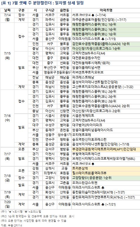 7월 셋째 주 단지별 분양일정. [사진=부동산R114] |