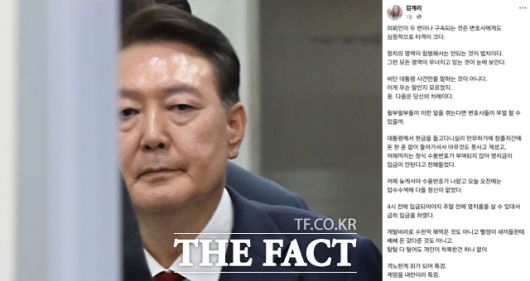 김 변호사는 "개발 비리로 수천억 해 먹은 것도 아니고 탈탈 다 털어도 개인이 착복한 건 하나 없다"며 "격노한 게 죄가 되어 특검. 계엄을 내란이라 특검"이라고 덧붙이기도 했다.
