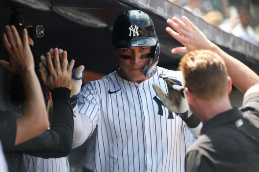 저지는 0-5로 끌려가던 9회말 1사 2루에서 브래드 켈러를 상대로 우중간 담장을 넘는 홈런을 날렸다. 0-2의 철저히 불리한 볼카운트였지만 3구째가 한가운데 들어오는 실투였고, 저지는 시속 105.5마일(169.8㎞) 초강력 타구로 388피트(118.3m) 홈런을 터트렸다. 시즌 35호이자 통산 350호 홈런이었다.