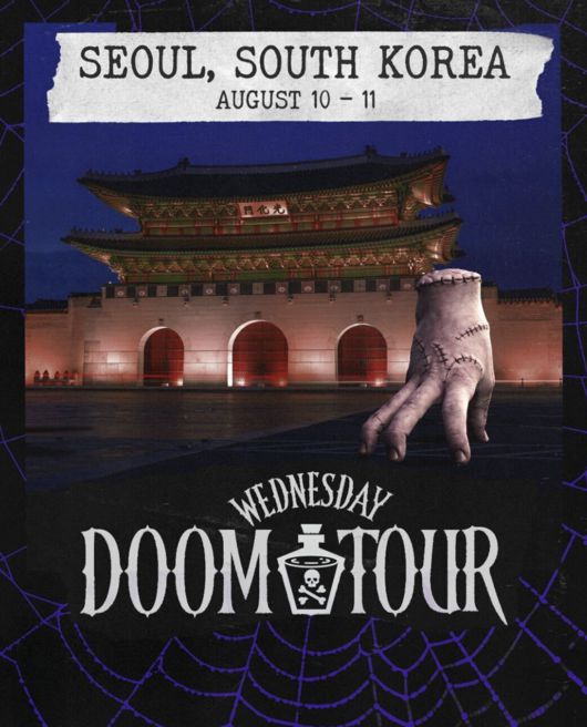 이와 관련해 13일(오늘) 넷플릭스 코리아 측은 "8월, 한국은 좀 서늘해지겠군. 웬즈데이의 차가운 그림자가 이 여름의 고통에서 널 해방시켜 줄거야. 약간의 소름 끼침은 덤이고. 웬즈데이 DOOM TOUR, 서울에서 곧 만나"라는 글과 함께 8월 10일과 11일 내한을 예고해 눈길을 끌었다.