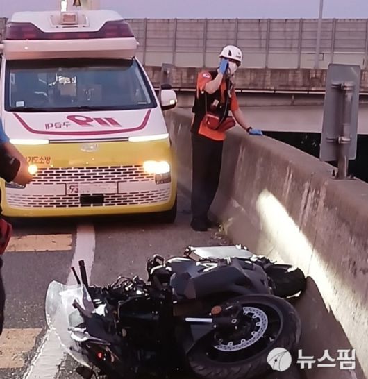 [부천=뉴스핌] 박승봉 기자 = 13일 새벽 경기 부천시 소사구 송내동 송내IC 램프구간에서 오토바이 단독 사고로 추정되는 추락 사고가 발생해 30대 남성 2명이 중경상을 입었다. 이 중 1명은 현장에서 사망이 확인됐다.
