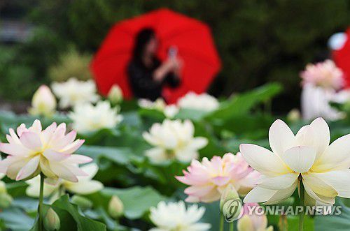 (양평=연합뉴스) 홍기원 기자 = 13일 연꽃문화제가 열리고 있는 경기도 양평군 세미원을 찾은 시민들이 활짝 핀 연꽃을 감상하고 있다. 2025.7.13