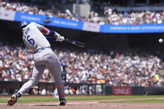 LA 다저스의 김혜성이 12일(현지 시간) 미 캘리포니아주 샌프란시스코 오라클 파크에서 열린 2025 메이저리그 샌프란시스코 자이언츠와의 경기 6회 초 1타점 결승 적시타를 치고 있다. 김혜성은 4타수 1안타 1타점 2삼진을 기록했고 다저스는 2-1로 승리했다.뉴시스 |